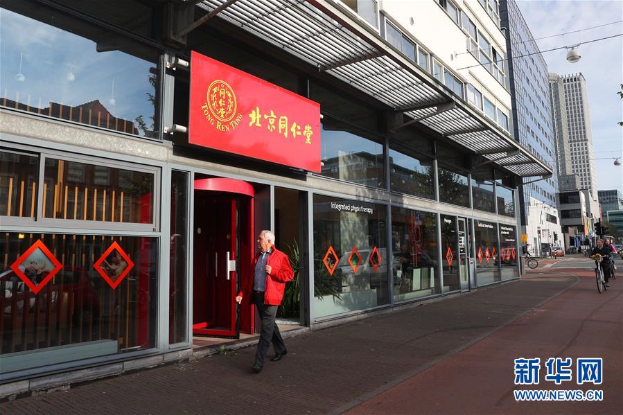 10月15日,在荷蘭海牙的唐人街,行人經(jīng)過一家中醫(yī)館。新華社記者鄭煥松 攝