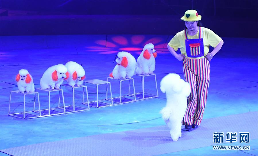10月16日,馬戲團演員在濮陽國際雜技藝術節(jié)上表演馬戲《小狗當家》。