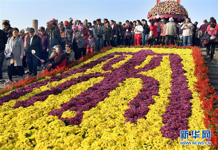 10月17日,游客在開封龍亭公園欣賞菊花。重陽時(shí)節(jié),各色菊花競(jìng)相綻放,把古都開封裝點(diǎn)得分外秀美,吸引眾多游客前來觀賞游玩。 新華社記者 李安 攝