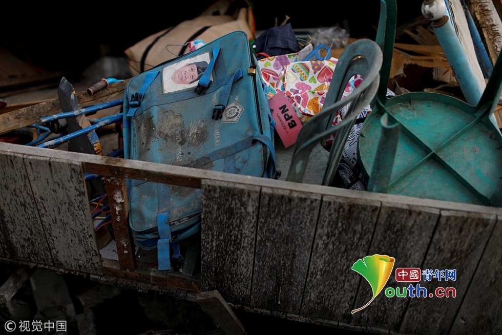 當(dāng)?shù)貢r(shí)間2018年10月11日,印尼帕盧,15歲的Ikhmal Yudanto站在他母親的汽車上,汽車在地震中被嚴(yán)重毀壞。