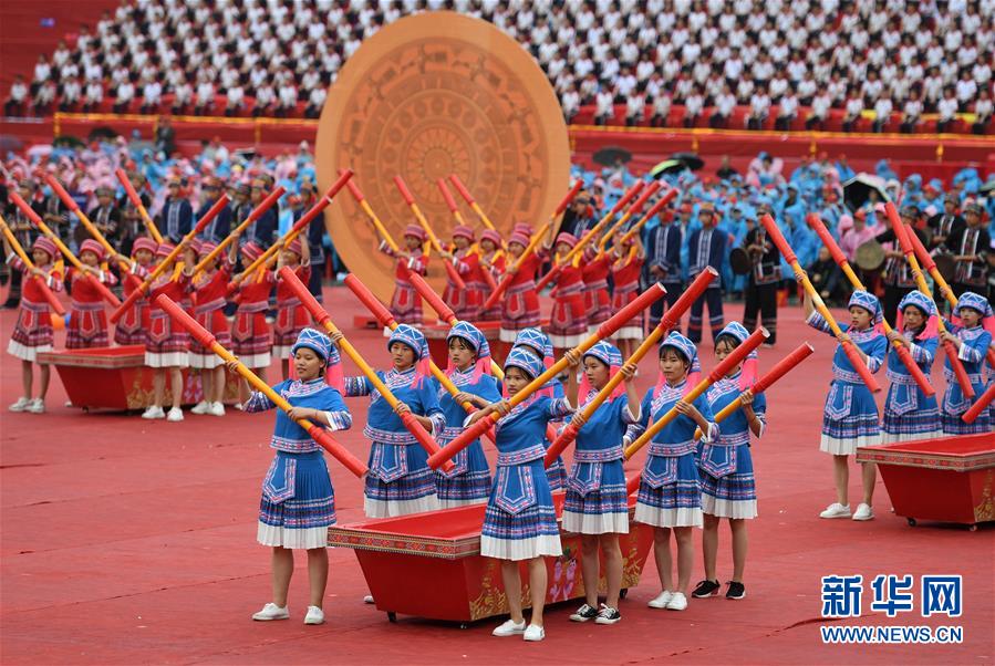 當(dāng)日,廣西大化瑤族自治縣舉行自治縣成立30周年慶祝大會(huì),當(dāng)?shù)馗髯逋d歌載舞慶縣慶。