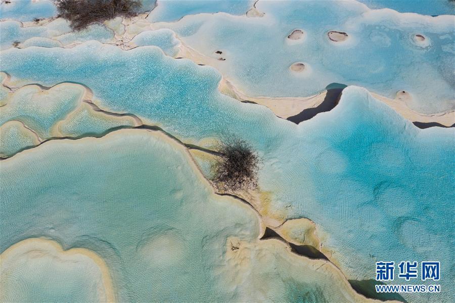 俯瞰黃龍溝五彩池一角,彩池錯落有致,宛如層層玉盤(10月19日無人機拍攝)。 深秋時節(jié),在雪山、藍天、白云和彩林映襯下,黃龍溝中的彩池色彩更加斑斕,目前黃龍景區(qū)進入觀賞最佳時節(jié)。黃龍風景名勝區(qū)位于四川省松潘縣境內,以彩池、灘流、雪山、峽谷、森林等聞名,享有“人間瑤池”“圣地仙境”之美譽。新華社記者 江宏景攝