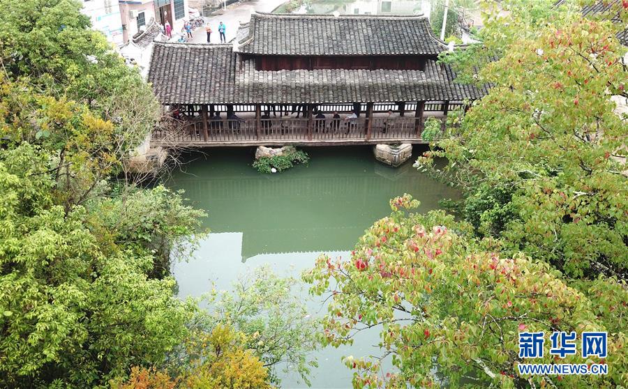 有著數(shù)百年歷史的廣西富川瑤族自治縣朝東鎮(zhèn)東水村風(fēng)雨橋(10月19日無人機(jī)拍攝)?!⌒氯A社記者 周華 攝