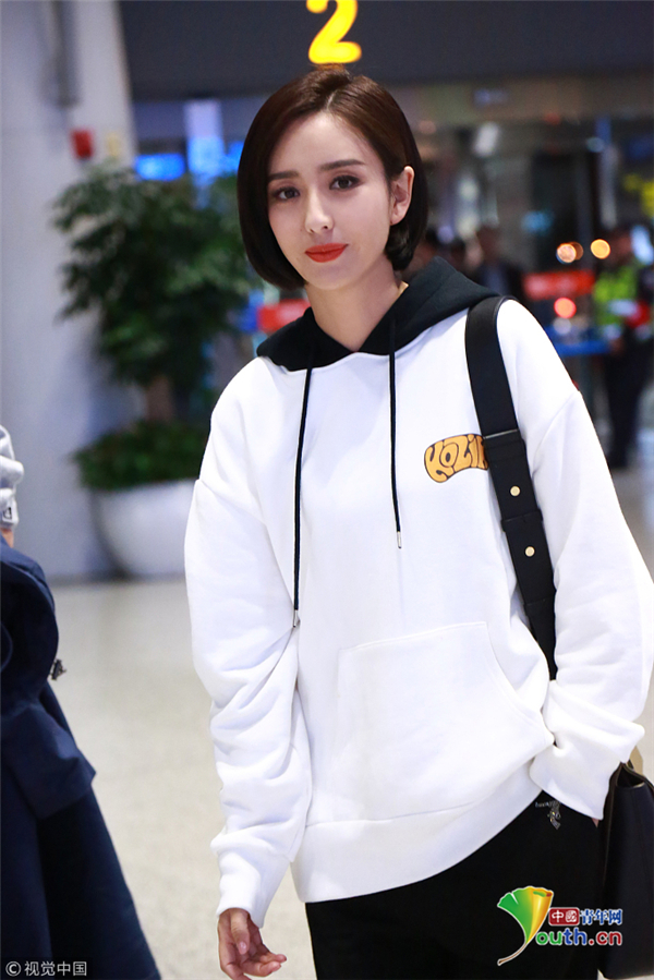 10月18日,湖南長沙, 佟麗婭錄完《快樂大本營 》現(xiàn)身長沙機(jī)場,她梳利落短發(fā)穿連帽衛(wèi)衣,笑容甜美氣質(zhì)佳。