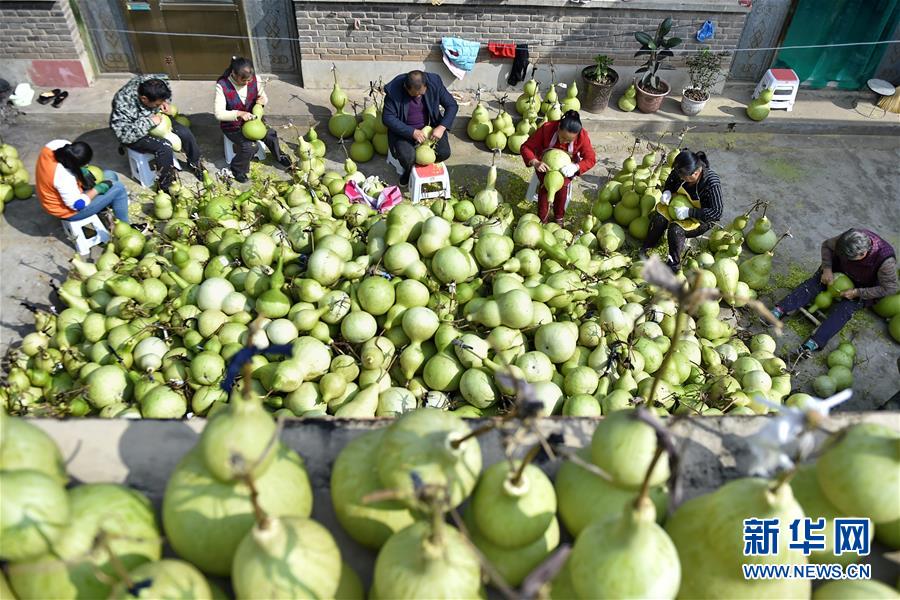 9月27日,山西省安澤縣和川鎮(zhèn)孔旺村的村民將葫蘆去皮。近日,山西省安澤縣和川鎮(zhèn)孔旺村種植的葫蘆喜獲豐收,村民們忙著將摘下的葫蘆去皮晾干。孔旺村于2016年成立葫蘆種植合作社,種植、采摘、加工等環(huán)節(jié)全部由貧困戶負責,為貧困戶拓寬增收渠道。新華社記者 曹陽 攝