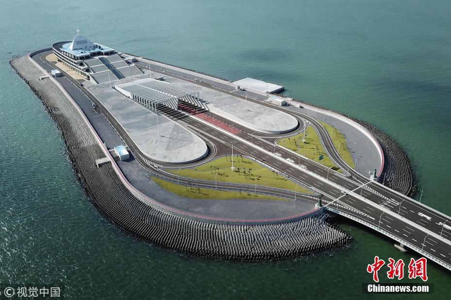 圖為2018年9月18日,強(qiáng)臺(tái)風(fēng)“山竹”吹襲香港過后,港珠澳大橋安然無(wú)恙。圖為位于香港海域的港珠澳大橋東人工島。李志華 攝 圖片來(lái)源:視覺中國(guó)
