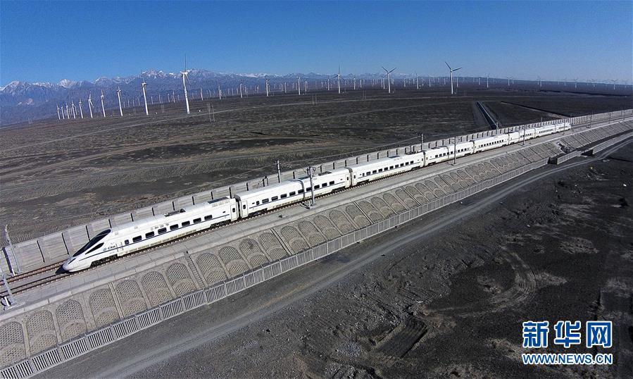 一輛和諧號(hào)動(dòng)車(chē)穿行在新疆烏魯木齊達(dá)坂城風(fēng)力發(fā)電場(chǎng)的“風(fēng)車(chē)森林”里(2014年11月16日無(wú)人機(jī)拍攝)。今年以來(lái),新疆穩(wěn)步推進(jìn)新能源參與“疆電外送”、擴(kuò)大與燃煤自備電廠(chǎng)調(diào)峰替代交易等多種電力交易方式,著力破解“綠色電力”上網(wǎng)難題,新能源發(fā)電量同比增加近13個(gè)百分點(diǎn),而棄電量和棄電比實(shí)現(xiàn)“雙降”,綠色發(fā)展理念進(jìn)一步落實(shí)。 新疆是我國(guó)重要的能源供應(yīng)和儲(chǔ)備基地,風(fēng)能、太陽(yáng)能儲(chǔ)量豐富。近年來(lái),新疆新能源裝機(jī)總量突破2700萬(wàn)千瓦,規(guī)模和占比均居全國(guó)前列。新華社記者 江文耀 攝