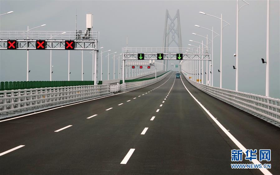 10月24日,車輛在港珠澳大橋上行駛。當(dāng)日,港珠澳大橋正式通車。 新華社發(fā)(王申 攝)