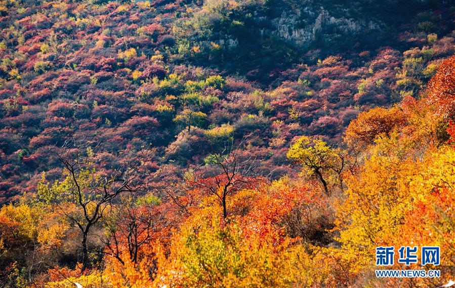 10月24日拍攝的河北省武安市賀進(jìn)鎮(zhèn)后臨河村景色。 金秋時(shí)節(jié),位于太行山區(qū)的河北省武安市賀進(jìn)鎮(zhèn)后臨河村的紅葉進(jìn)入觀賞佳期。 新華社記者 王曉 攝