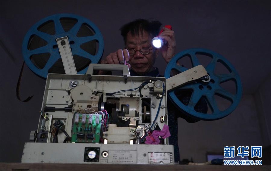 10月30日,曾紀(jì)連在家中修理一臺(tái)老舊的電影放映機(jī)。 新華社記者 胡晨歡攝
