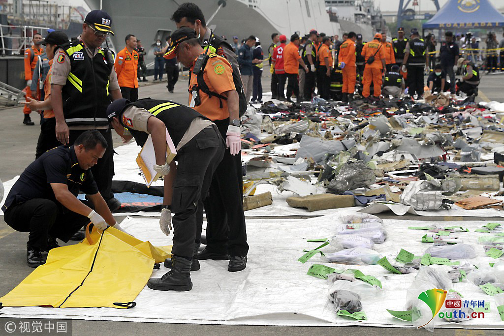 印尼搜救隊(duì)持續(xù)打撈出獅航墜毀客機(jī)遇難者遺物和飛機(jī)殘骸。一架載有189人的印尼獅子航空(Lion Air Air)客機(jī)在從首都雅加達(dá)飛往邦加檳港過程中墜海。機(jī)上載有181名乘客,6名機(jī)組人員和2名飛行員,乘客中包括20名官員。圖片作者:Anadolu Agency