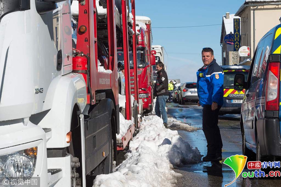 當(dāng)?shù)貢r(shí)間2018年10月30日,法國(guó)菲克斯圣熱內(nèi),當(dāng)?shù)赝唤荡笱?,?dǎo)致950人被困在大雪覆蓋的公路上,不得不睡在緊急救援中心。法國(guó)國(guó)家氣象局已經(jīng)將當(dāng)?shù)刂糜诔壬踩渲隆?/p>