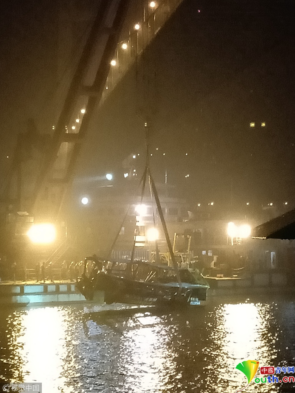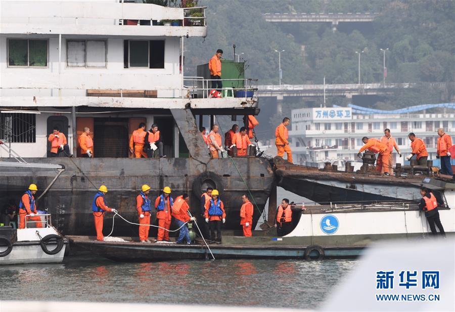 2018年10月31日消息,重慶。10月31日23時28分,重慶萬州長江二橋墜江公交車被打撈出水。