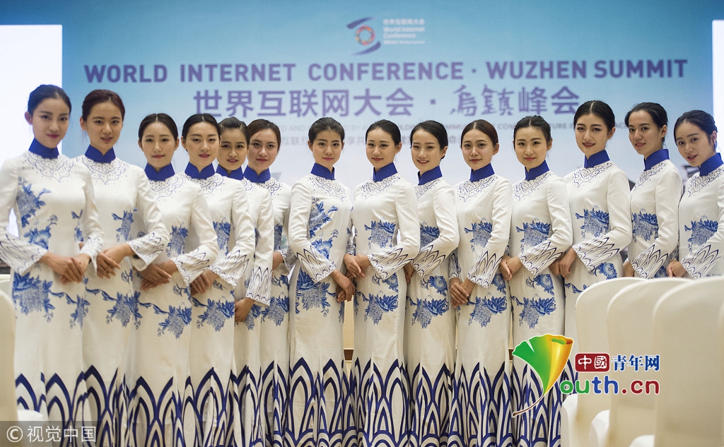 2015年12月14日,浙江嘉興,在烏鎮(zhèn)景區(qū)枕水度假酒店,身著中式青花旗袍的美女禮儀驚艷亮相主會場,成為世界互聯(lián)網(wǎng)大會上一道靚麗的風(fēng)景。