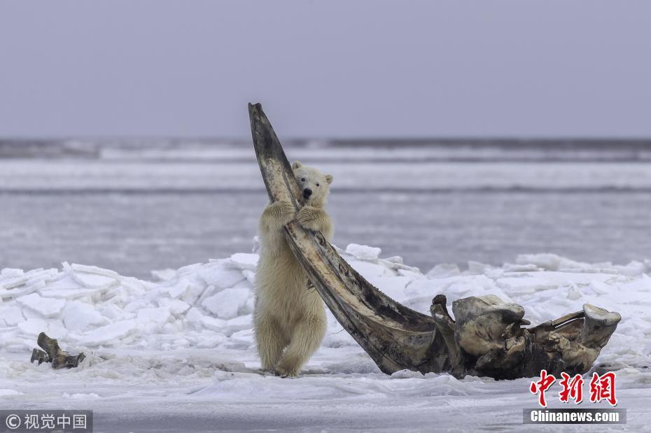 11月1日訊(具體拍攝時(shí)間不詳),美國阿拉斯加州,一只北極熊媽媽帶著幼崽們外出覓食,發(fā)現(xiàn)了一節(jié)長4.5米的北極露脊鯨骸骨。75噸重的鯨魚對因紐皮亞特人來說是神圣的,他們每年要吃三次鯨魚,把骨頭放在指定的地方,讓北極熊吃完粘在骨頭上的碎肉。攝影師Eiji Itoyama為拍攝此照片在位于北冰洋邊緣的阿拉斯加卡克托維克村停留了5天。圖片來源:視覺中國