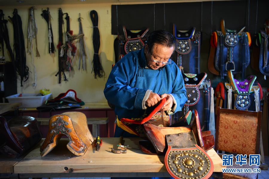 10月31日,在內(nèi)蒙古自治區(qū)通遼市科爾沁左翼后旗,套格敦白乙在工作室制作馬鞍。 內(nèi)蒙古自治區(qū)通遼市科爾沁左翼后旗的老匠人套格敦白乙是“蒙古族馬具制作技藝”國(guó)家級(jí)非遺項(xiàng)目的代表性傳承人,制作馬具長(zhǎng)達(dá)40余年,他的制作技藝體現(xiàn)了科爾沁馬具做工精良、用料考究、使用舒適、裝飾華麗的特點(diǎn)。 蒙古族被譽(yù)為“馬背上的民族”,馬具制作歷史悠久,在蒙古族傳統(tǒng)手工藝中占有重要地位。2008年,蒙古族馬具制作技藝被列入國(guó)家級(jí)非物質(zhì)文化遺產(chǎn)名錄。 新華社記者鄒予攝
