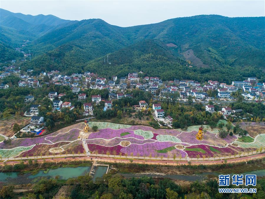 11月2日,空中俯瞰小浦鎮(zhèn)的“五彩花?!?,多彩的花海與金黃的銀杏林構(gòu)成了一幅美麗的秋季風(fēng)景(無(wú)人機(jī)拍攝)。 新華社記者 徐昱 攝
