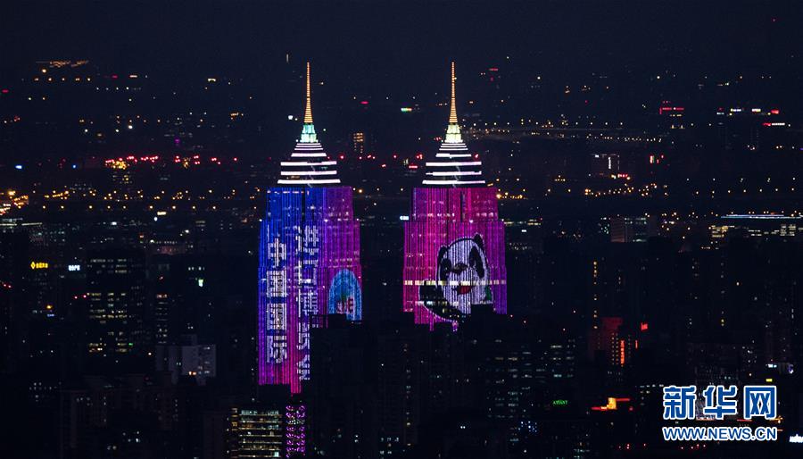 11月2日,上海環(huán)球港的燈光展示出首屆中國國際進口博覽會標(biāo)識和吉祥物“進寶”的形象。 首屆中國國際進口博覽會即將在上海開幕。美麗的上海張開懷抱,迎接八方來客。 新華社記者 王建華 攝