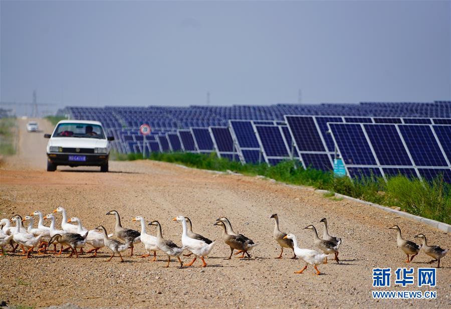 這是內(nèi)蒙古鄂爾多斯市杭錦旗庫(kù)布其沙漠生態(tài)太陽(yáng)能光伏光熱治沙發(fā)電綜合示范地(8月1日攝)?!鞍迳习l(fā)電、板下種草、板間養(yǎng)殖”,目前該太陽(yáng)能發(fā)電項(xiàng)目治沙面積達(dá)到了13.3平方公里,每年發(fā)電5億千瓦時(shí),實(shí)現(xiàn)銷(xiāo)售收入4.5億元。其社會(huì)效益、生態(tài)效益、民生效益、經(jīng)濟(jì)效益十分顯著。