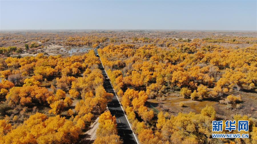 新疆尉犁縣胡楊林深處的一條小路(10月25日攝)。 10月中下旬,靜靜的塔里木河中下游一片金黃。胡楊深處,條條小路蜿蜒綿長通向遠方,引人入勝。 塔里木河是中國最長的內陸河,這一區(qū)域原始胡楊林分布較為集中。隨著塔里木河連續(xù)19次向下游生態(tài)輸水,為胡楊林“解渴”,塔河兩岸生態(tài)得到明顯改善,沙地面積逐年減少。 新華社記者趙戈攝