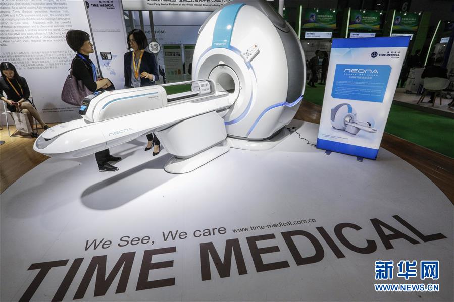 11月6日,美時(shí)醫(yī)療(美國(guó))有限公司工作人員為參觀者介紹世界首臺(tái)嬰幼兒專(zhuān)用核磁共振儀。該設(shè)備填補(bǔ)了這個(gè)領(lǐng)域的市場(chǎng)空白,體型輕巧,成像分辨率高,更方便在新生兒重癥監(jiān)護(hù)室里使用。