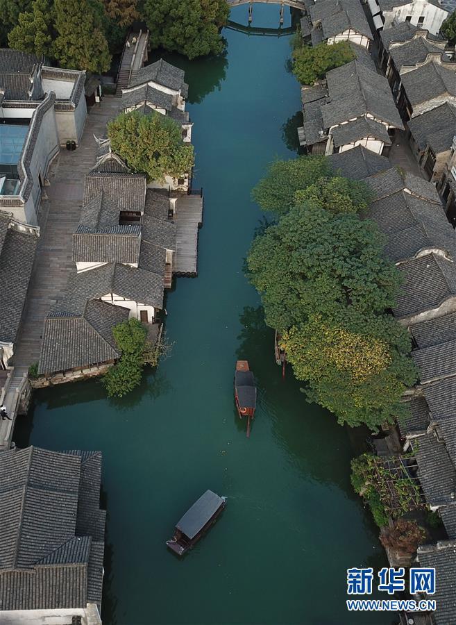 這是10月31日無人機(jī)拍攝的烏鎮(zhèn)西柵景區(qū)。 新華社記者黃宗治攝