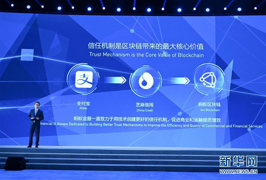 11月7日,螞蟻金服首席執(zhí)行官井賢棟在介紹螞蟻金服金融級商用區(qū)塊鏈平臺。新華社記者陳曄華攝
