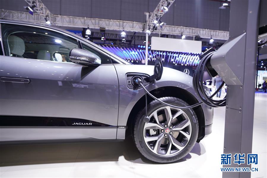 這是11月5日在汽車展區(qū)拍攝的捷豹純電動(dòng)I-PACE汽車。新華社記者 孟鼎博 攝