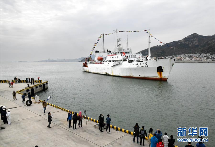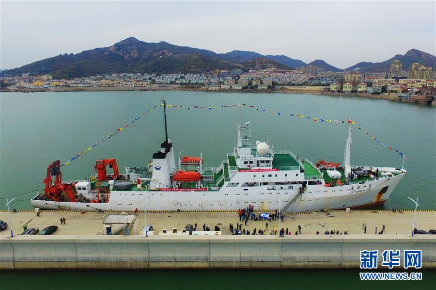 11月7日,“大洋一號(hào)”駛?cè)胛挥谇鄭u市嶗山區(qū)的青島海洋科學(xué)考察基地碼頭。新華社記者 李紫恒