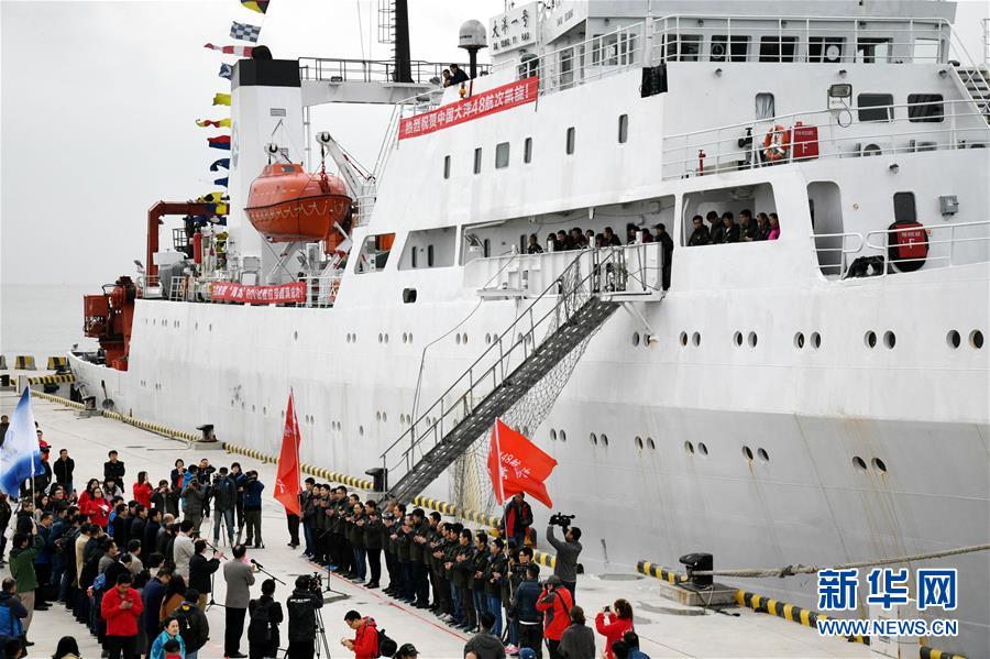 11月7日,青島海洋科學(xué)考察基地碼頭舉行凱旋儀式,迎接完成中國(guó)大洋48航次任務(wù)的科考隊(duì)員。 新華社記者 李紫恒 攝