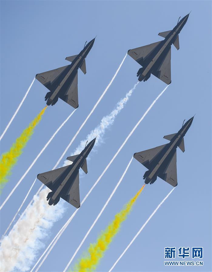 11月6日,中國(guó)空軍八一飛行表演隊(duì)在航展現(xiàn)場(chǎng)進(jìn)行飛行表演。當(dāng)日,第十二屆中國(guó)國(guó)際航空航天博覽會(huì)在珠海開(kāi)幕。新華社記者鄧華攝