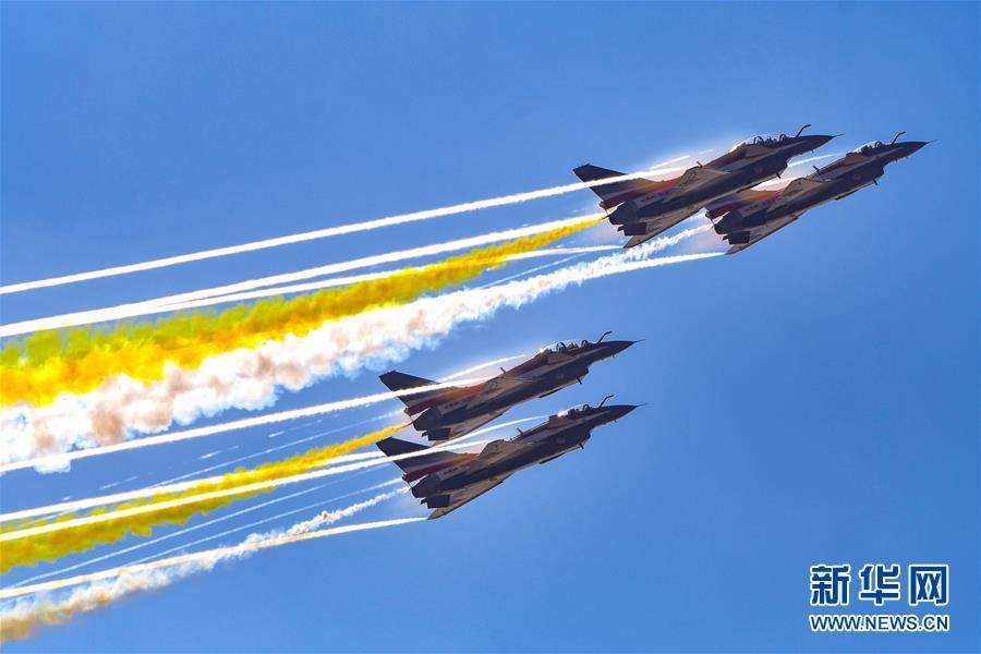 11月6日,中國空軍八一飛行表演隊在航展現(xiàn)場進行飛行表演。當(dāng)日,第十二屆中國國際航空航天博覽會在珠海開幕。新華社記者楊光攝