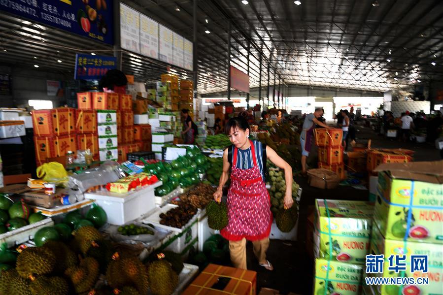 這是廣西憑祥市物流園內(nèi)的水果交易市場一角(9月4日攝)。新華社記者 張愛林 攝