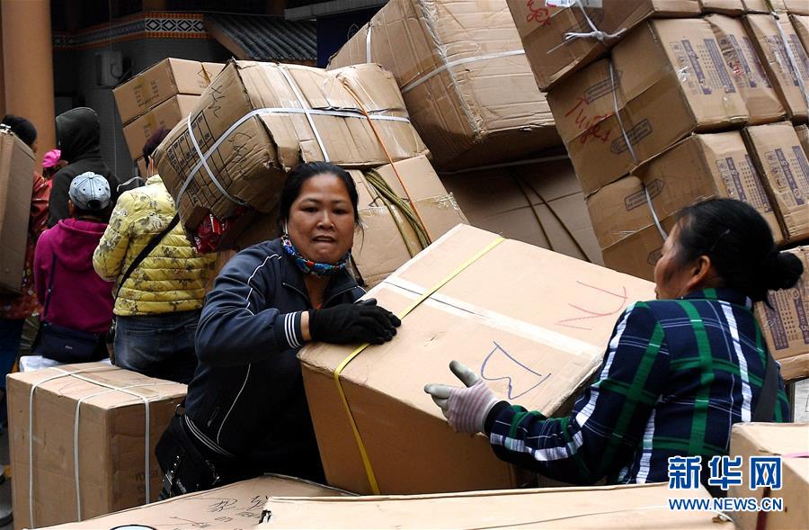 人們?cè)趶V西憑祥市浦寨邊貿(mào)區(qū)搬運(yùn)貨品(1月16日攝)。新華社記者 張愛(ài)林 攝