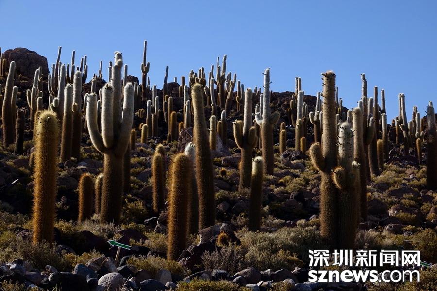 深圳新聞網(wǎng)訊 烏尤尼鹽沼中,有一個(gè)孤立的小山頭,猶如瀚海中的小島。島上長(zhǎng)滿(mǎn)巨大的仙人柱,據(jù)說(shuō)有的已經(jīng)生長(zhǎng)了上千年。這種形狀各異、耐鹽堿、耐干旱的熱帶植物豐富了鹽沼的風(fēng)光,構(gòu)成絕無(wú)僅有的世界奇觀。 李仁奇 攝