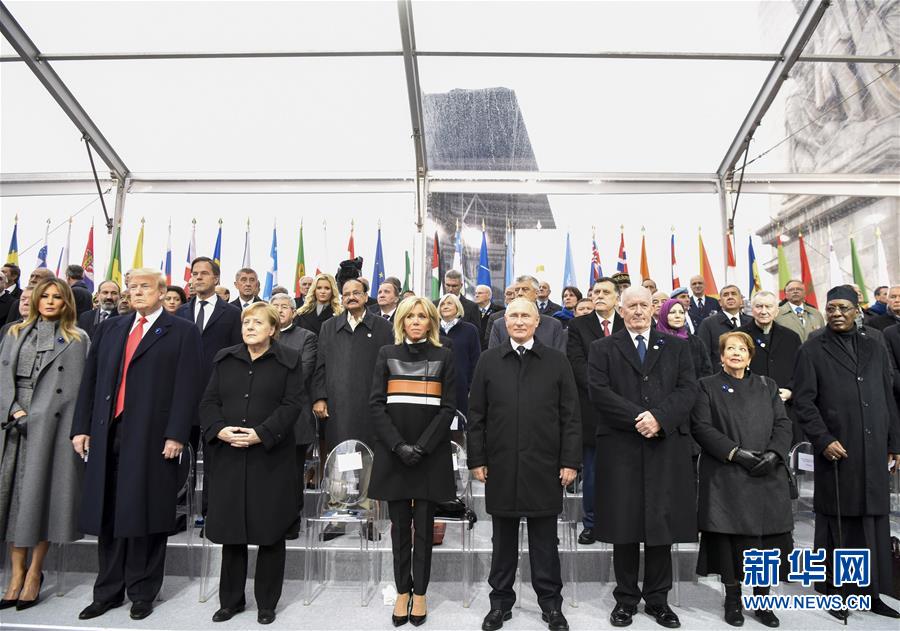 11月11日,在法國巴黎,俄羅斯總統(tǒng)普京(前右四)、德國總理默克爾(前左三)與美國總統(tǒng)特朗普(前左二)出席紀念儀式。當日,法國政府在巴黎凱旋門前舉行儀式,隆重紀念第一次世界大戰(zhàn)結(jié)束一百周年。新華社記者 陳益宸 攝