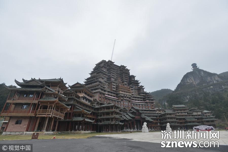 深圳新網(wǎng)網(wǎng)訊 始建于2016年9月的貴州省獨(dú)山縣水司樓已進(jìn)入工程收尾階段。雄偉壯麗造型別致的水司樓,是集會(huì)展博覽、酒店住宿、游覽觀光等于一體的大型綜合體。除具有水族特色元素外,該建筑還融合了苗族、布依族特色,是獨(dú)山縣凈心谷景區(qū)最具標(biāo)志性的宏大建筑。該樓占地面積5900平方米,總建筑面積60000平方米,樓高99.9米,共24層,是世界上最高大最大最壯觀的水族建筑,被稱為“天下第一水司樓”。 水司樓是按照水族依山畔水而居的傳統(tǒng)習(xí)俗和建筑特征修建,是水族人民的文化符號(hào)和智慧的象征,背靠?jī)粜暮庸壬郊梗曰⌒蔚钠矫娌季帜J?,如同張開懷抱的巨人,緊擁美麗的姻脂河灣,設(shè)計(jì)巧妙,工藝精巧。