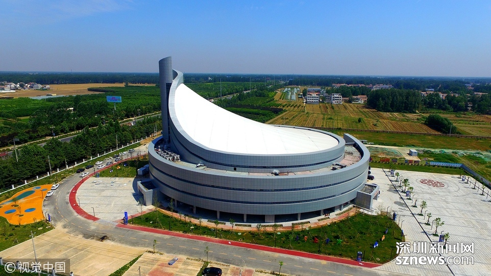 2018年6月13日,航拍河南淮陽一座即將竣工落成的體育場(chǎng)館建筑,市民稱酷似一個(gè)石磨盤。