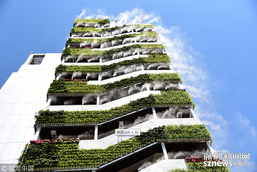 相關(guān)鏈接 10層高樓長(zhǎng)滿綠植“仙氣飄飄” 這座建筑在抖音火了! 深圳新聞網(wǎng)訊 2018年6月10日,西安,高樓外長(zhǎng)滿綠植,還縈繞著霧氣。這段只有6秒的短視頻在抖音火了,網(wǎng)友評(píng)論這是“第四代住房”,其實(shí)這是西安市眾創(chuàng)示范街區(qū)的一處安裝了智能霧森系統(tǒng)的西北最大戶外垂直綠化。 夏天能區(qū)域降溫5℃至10℃ 還可有效抑制PM10 “仙氣飄飄”、“西安天氣有多熱,房子都冒煙了”,這是一段抖音小視頻里網(wǎng)友的評(píng)論留言。視頻中一棟10層高的樓外側(cè)樓梯處掛滿了綠植,同時(shí)綠植上方還有噴霧。藍(lán)藍(lán)的天空當(dāng)做背景,引來不少人上前拍照,配著背景音樂的確讓人感覺清涼無比。