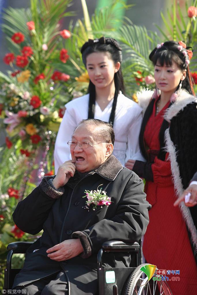 2005年1月10日,《神雕俠侶》劇組正式在第三個(gè)拍攝地—寧波象山開(kāi)機(jī)。金庸與劉亦菲在一起。