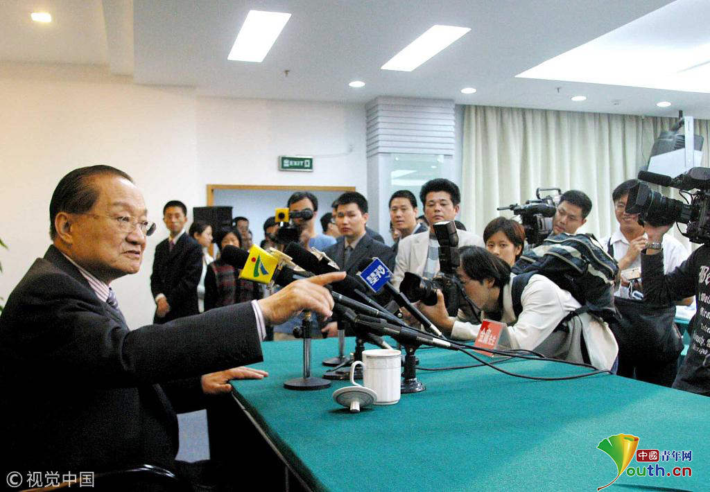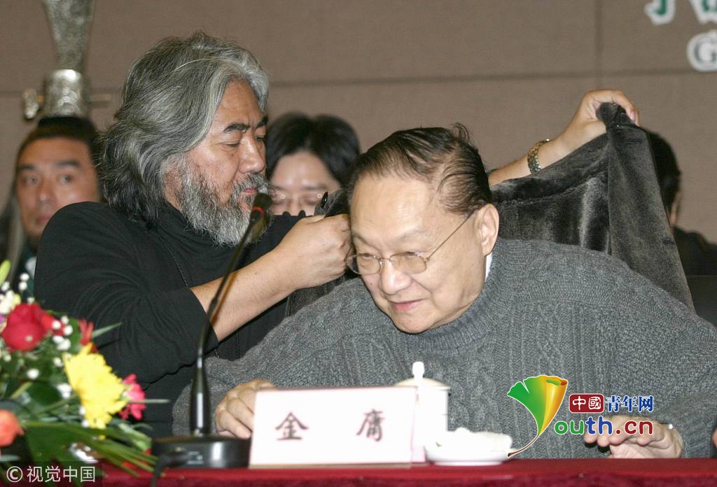 2003您7月24日,杭州,在回答記者提問(wèn)時(shí),金庸先生回答說(shuō)已經(jīng)收了3個(gè)學(xué)生。圖片作者:羅先明