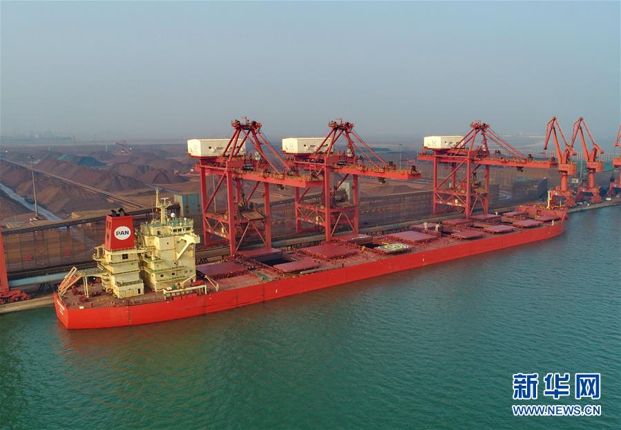 一艘輪船靠泊在唐山港京唐港區(qū)礦石碼頭(11月12日無(wú)人機(jī)拍攝)。記者從河北省交通運(yùn)輸廳港航管理局獲悉,今年1至10月,河北港口完成貨物吞吐量達(dá)9.5億噸,同比增長(zhǎng)4.3%。 新華社記者 楊世堯 攝