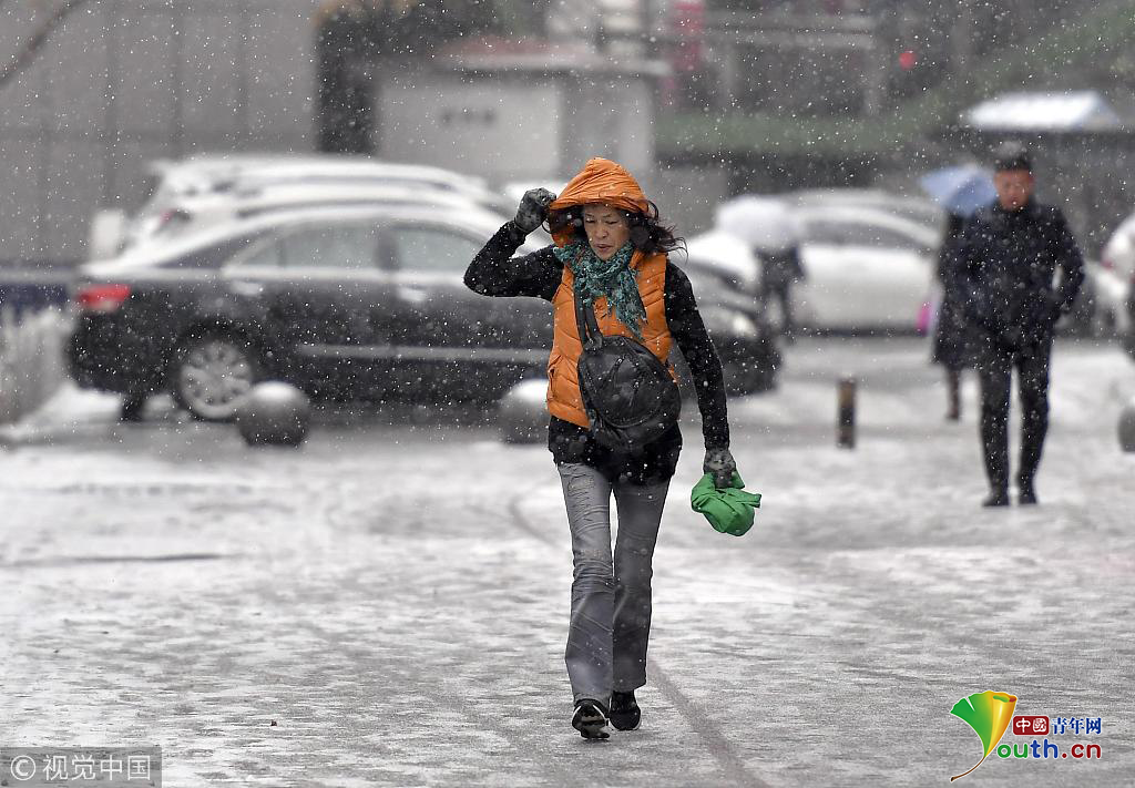 2018年11月12日,持續(xù)濃霧天氣的新疆烏魯木齊市,又迎來(lái)一場(chǎng)雨雪天氣,氣溫隨之驟降。圖為在風(fēng)雪中外出的民眾腳步匆匆。圖片作者:劉新
