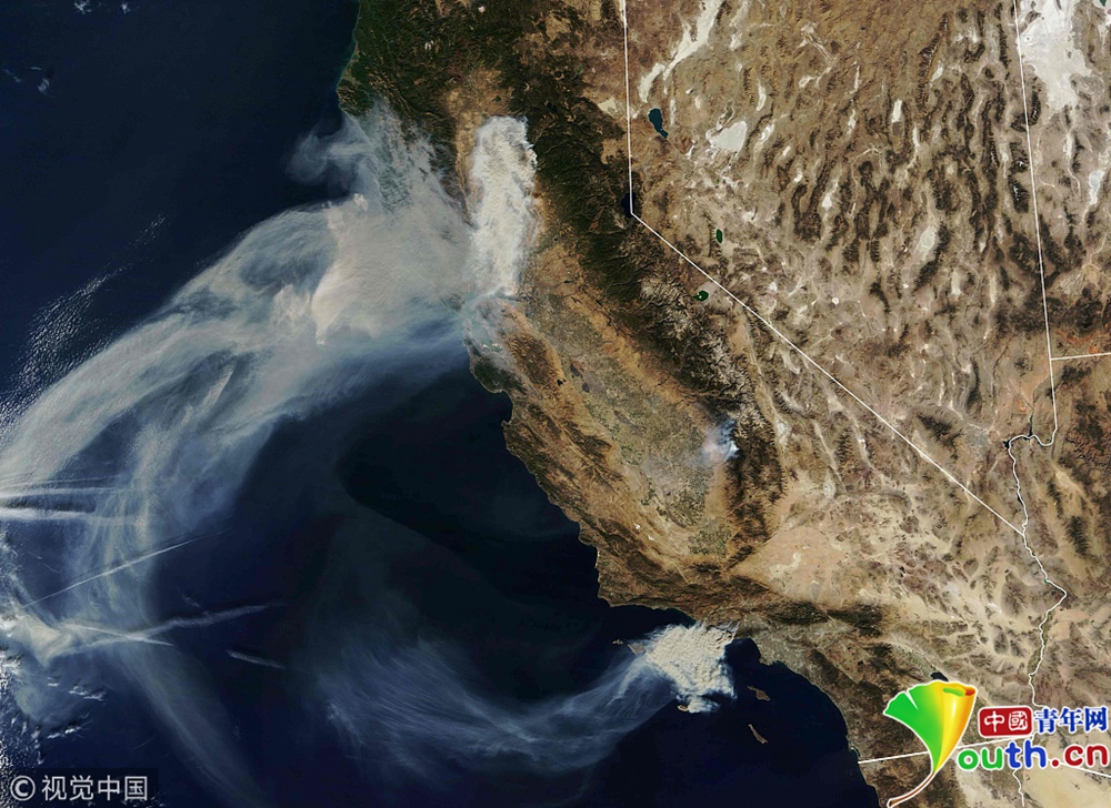NASA公布加州山火衛(wèi)星照片 火勢向海邊蔓延