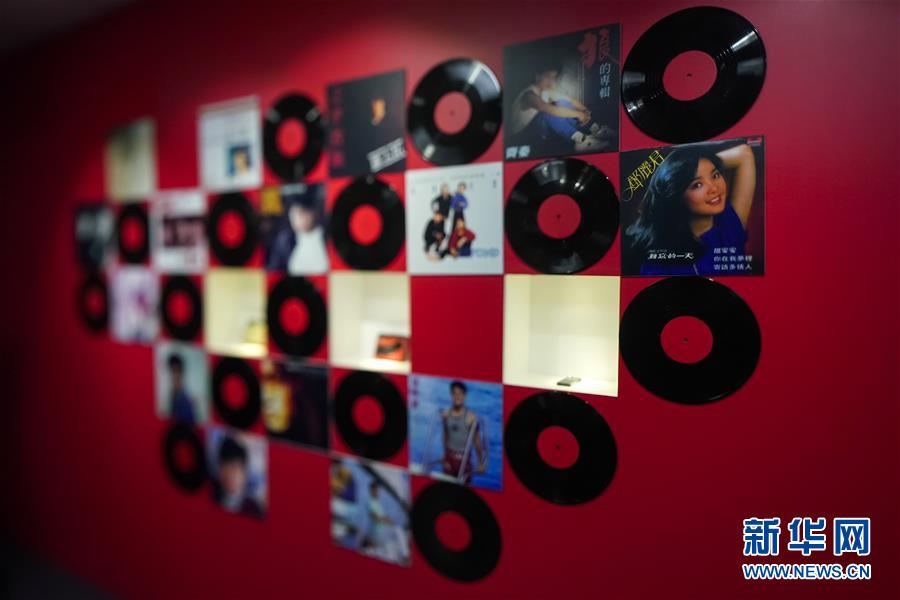 在“歷史巨變”展區(qū)拍攝的懷舊黑膠唱片墻(11月15日攝)。