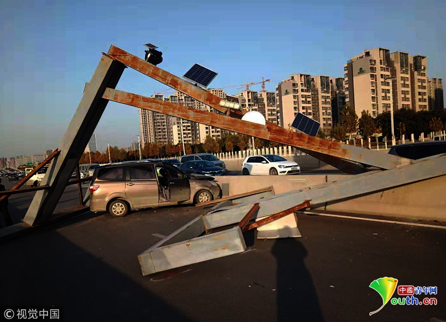 快速路司機開車“走神” 眨眼撞塌限高桿