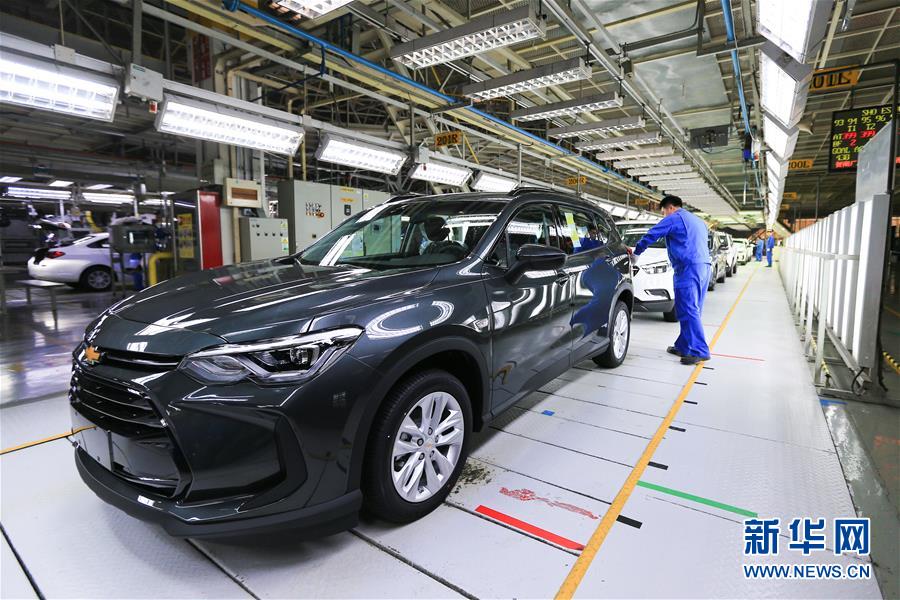 在上汽通用東岳汽車有限公司的總裝車間,工作人員對車輛進(jìn)行檢查(11月15日攝)。新華社記者王南攝