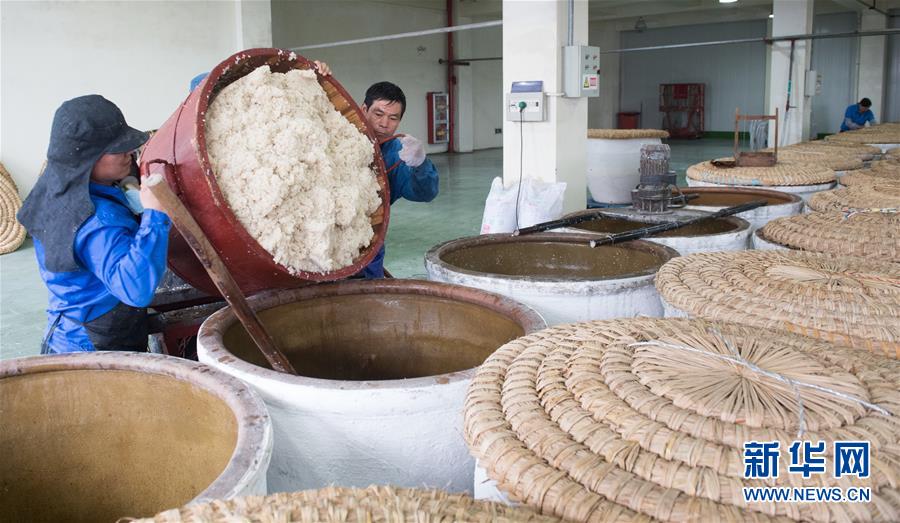 11月21日,工作人員在紹興女兒紅釀酒有限公司釀酒廠房將剛煮熟的糯米落缸。 浙江紹興一帶有“生女釀好酒、婚嫁宴賓客”的習俗,所釀之酒稱“女兒紅”。在紹興市上虞區(qū)東關街道,一家釀酒廠仍保留著傳統(tǒng)的黃酒生產線,恪守著近20道釀造工序,延續(xù)著傳統(tǒng)黃酒的釀制技藝和生女必釀“女兒紅”的文化習俗。 黃酒是中國最古老的酒種之一,傳統(tǒng)黃酒僅在冬季取鑒湖水和糯米釀制,所得之酒澄澈馥郁。 新華社記者翁忻旸攝