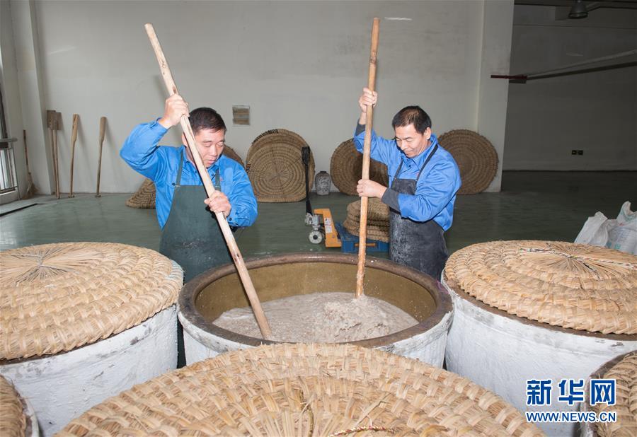 11月21日,工作人員在紹興女兒紅釀酒有限公司釀酒廠房用竹耙攪動(dòng)糯米,使其與麥曲和酒母充分混合。 浙江紹興一帶有“生女釀好酒、婚嫁宴賓客”的習(xí)俗,所釀之酒稱“女兒紅”。在紹興市上虞區(qū)東關(guān)街道,一家釀酒廠仍保留著傳統(tǒng)的黃酒生產(chǎn)線,恪守著近20道釀造工序,延續(xù)著傳統(tǒng)黃酒的釀制技藝和生女必釀“女兒紅”的文化習(xí)俗。 黃酒是中國(guó)最古老的酒種之一,傳統(tǒng)黃酒僅在冬季取鑒湖水和糯米釀制,所得之酒澄澈馥郁。 新華社記者翁忻旸攝