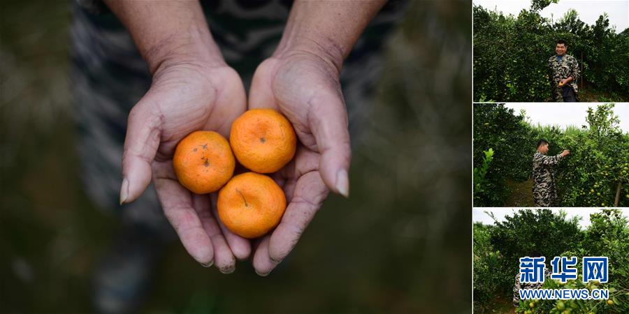 拼版照片:左圖為在永樂鎮(zhèn)四莫村,莫文振在果園里手捧剛剛摘下的桔子;右圖為莫文振在果園里勞作(照片均攝于11月19日)。莫文振從2012開始種植柑桔和甘蔗,2016年實(shí)現(xiàn)脫貧。 廣西融水苗族自治縣是國(guó)家扶貧工作重點(diǎn)縣,全縣“九山半水半分田”,生活生產(chǎn)環(huán)境較為惡劣,脫貧攻堅(jiān)任務(wù)艱巨,目前還有7.68萬(wàn)貧困人口。面對(duì)經(jīng)濟(jì)發(fā)展落后、貧困面廣且程度深的現(xiàn)狀,當(dāng)?shù)匕衙撠毠?jiān)與創(chuàng)新產(chǎn)業(yè)扶持相結(jié)合,依托生態(tài)資源優(yōu)勢(shì),實(shí)施“特色產(chǎn)業(yè)富民行動(dòng)”,通過(guò)發(fā)展特色民族旅游、林下經(jīng)濟(jì)和特色養(yǎng)殖業(yè)等扶貧產(chǎn)業(yè),帶動(dòng)貧困群眾依靠勤勞的雙手,拔窮根摘窮帽,實(shí)現(xiàn)脫貧致富。據(jù)了解,目前全縣貧困戶參與特色產(chǎn)業(yè)發(fā)展的有2.9萬(wàn)戶,扶貧產(chǎn)業(yè)覆蓋率達(dá)95%。 新華社記者 黃孝邦 攝